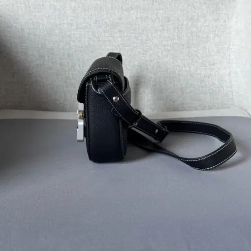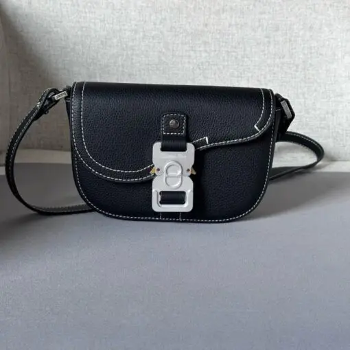 • Mini Saddle Messenger Bag with Flap Black Grained