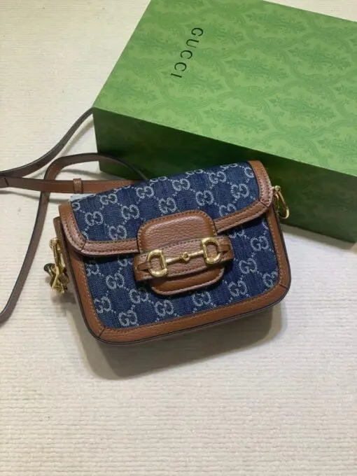 Gucci Horsebit 1955 Medium Shoulder Bag Denim Blue