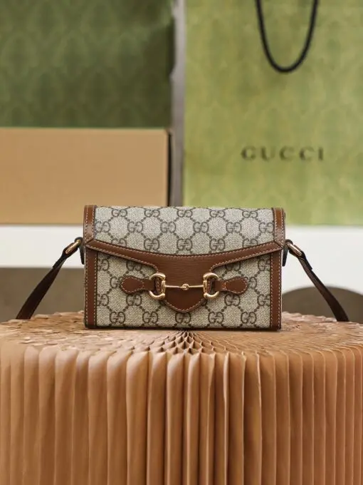 Gucci Horsebit 1955 Series Small Shoulder Bag Brown Beige