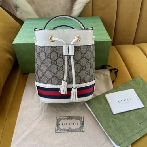 Gucci Ophidia Mini Bucket Bag Grey White