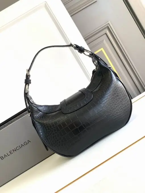 Balenciaga Essex Shoulder Bag Crocodile Black